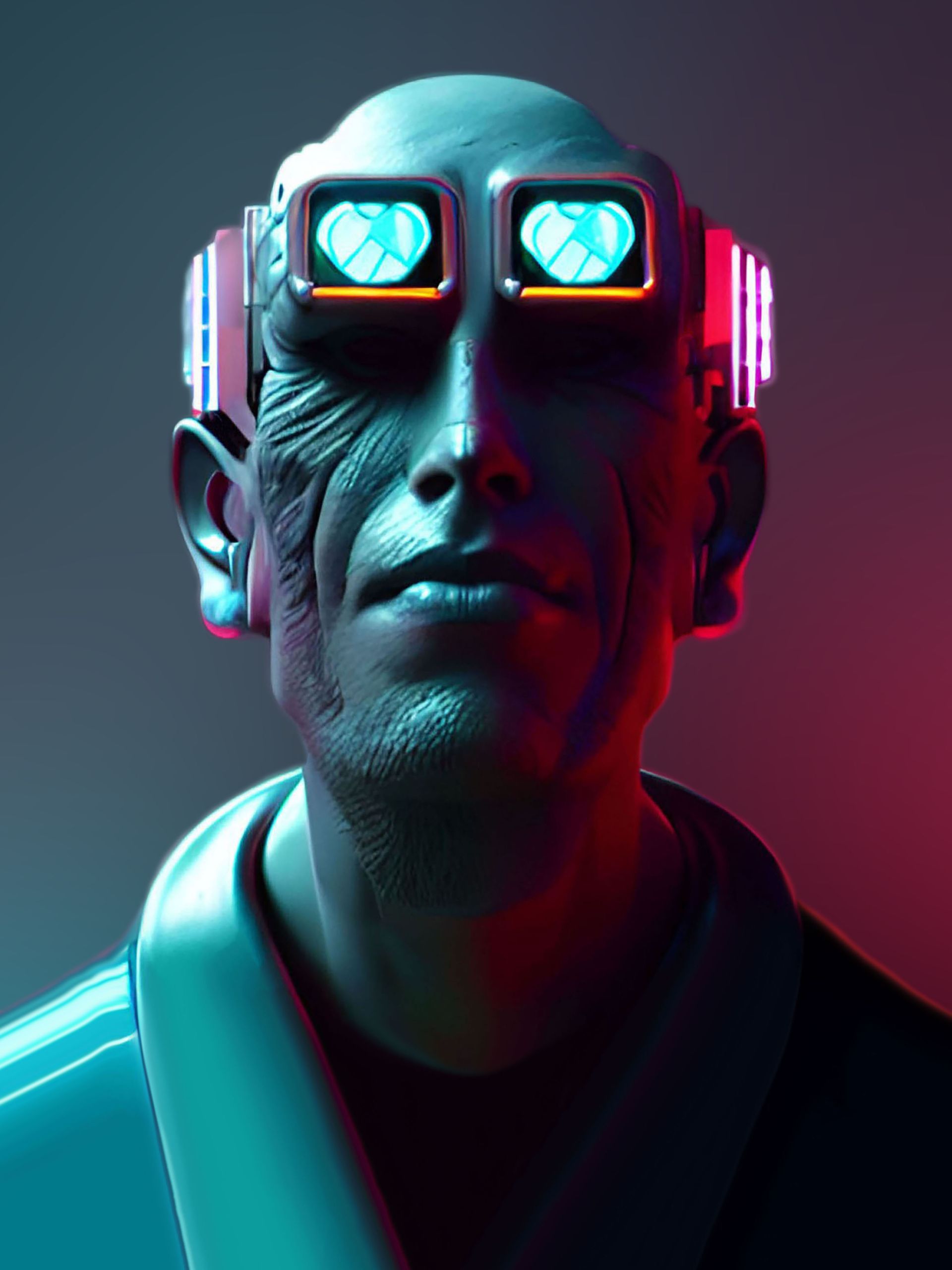 In a world of instant AI & NFTs minting, this collection stands apart. Each Cyborg is the result of human patience and artistic intent. AI helped generate the initial spark, but every image was hand-retouched, refined, and unified over the last three years.