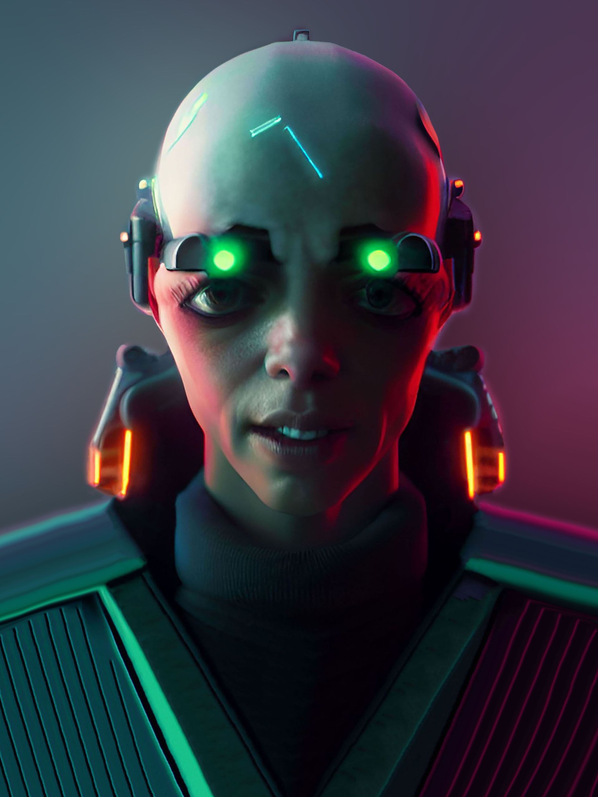 Each Cyborg is a procedurally created outlaw, merging cybernetic modifications, digital scars, and biomechanical aesthetics into an Art form that highglights the human-machine interaction and blends high-tech with cyberpunk rebellion.